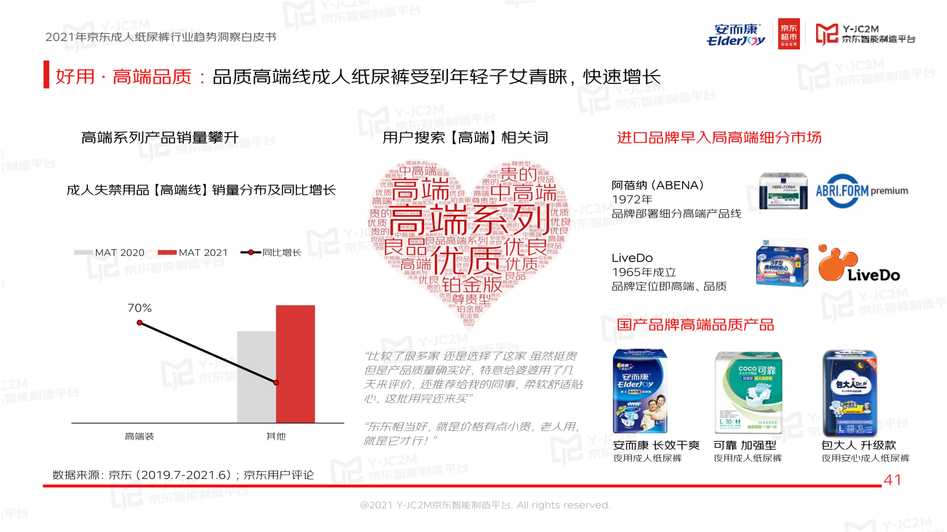 近日,彩神集团旗下成人纸尿裤品牌安而康联合京东智能制造平台共同发布《2021年京东成人纸尿裤行业趋势洞察白皮书》(下称《白皮书》),从行业概况、品牌格局、用户洞察、趋势展望四个维度,结合销量数据与消费者,深入剖析了随着我国步入老龄化社会以及消费观念不断升级,国内纸尿裤市场的全新变化与发展趋势。